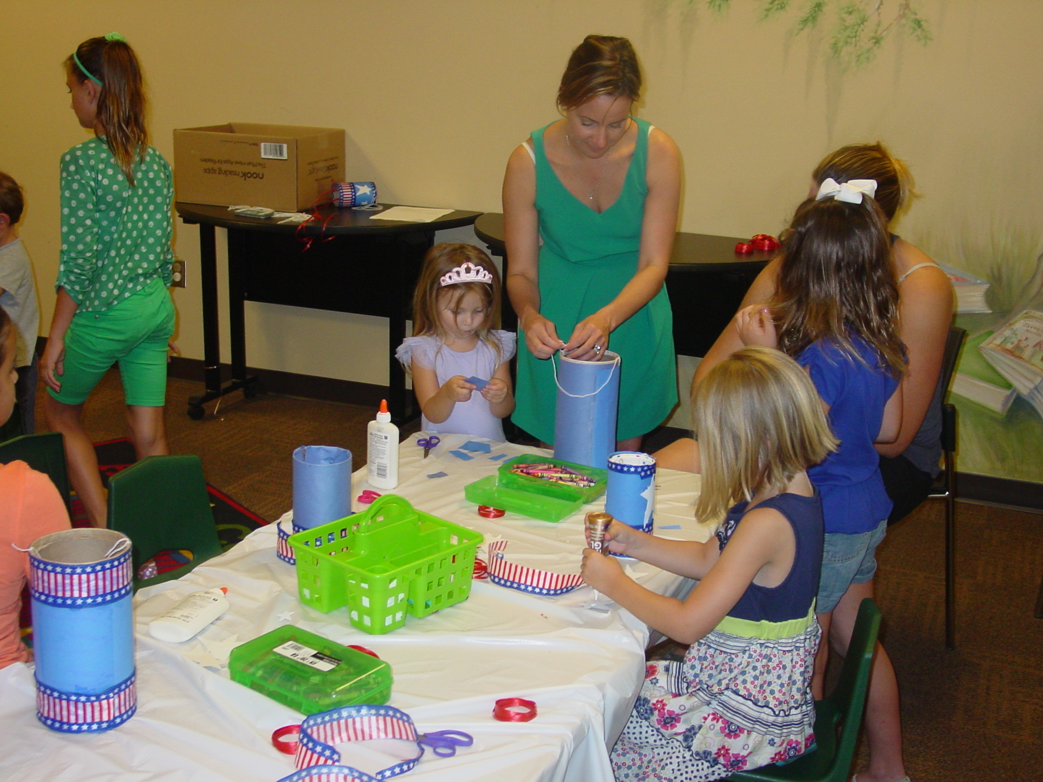 Our May Memorial Day craft comes to you courtesy of Martha Stewart’s webpage, where detailed directions on how to make our lovely, patriotic wind streamer can be found.