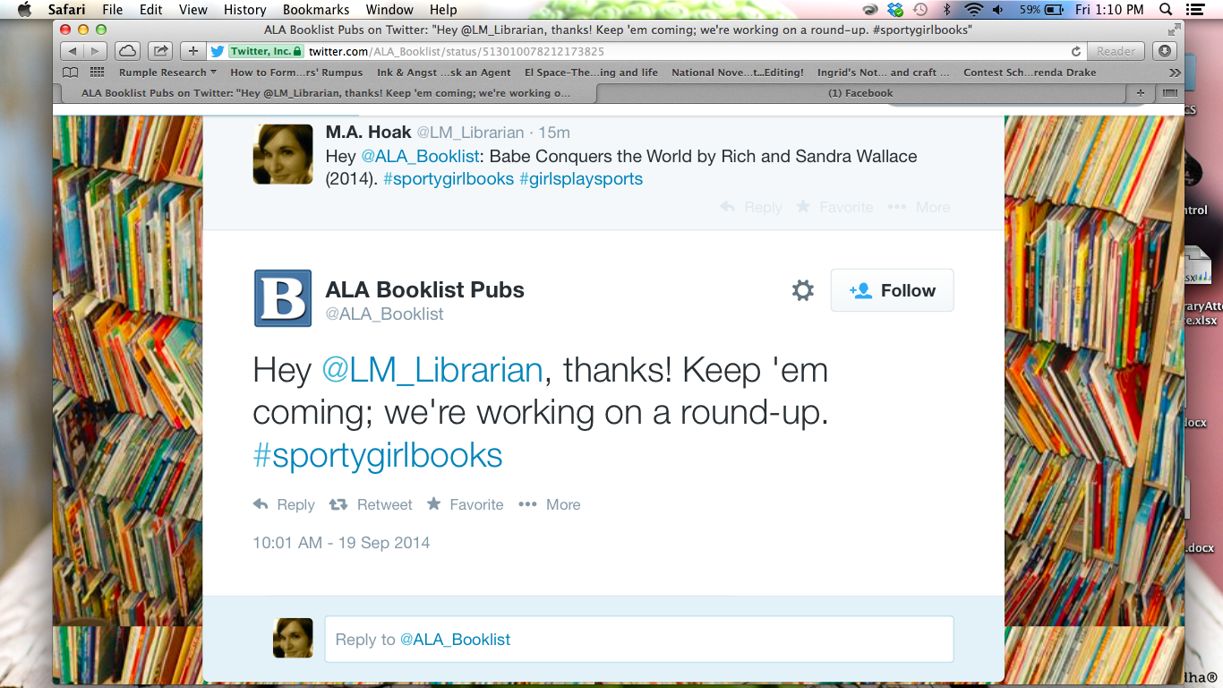 Better yet: come up with your own list. Visit blogs like Sporty Girl Books. Hunt with me for titles published specifically in 2014. Then hop on twitter and tell ALA’s Booklist what you think of this nonsense. Let’s start a storm. #girlsplaysports #sportygirlbooks @ALA_Booklist